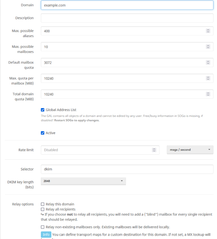 | dkim._domainkey.example.com | TXT | “v=DKIM1;k=rsa;t=s;s=email;p=blablablablablabla” |