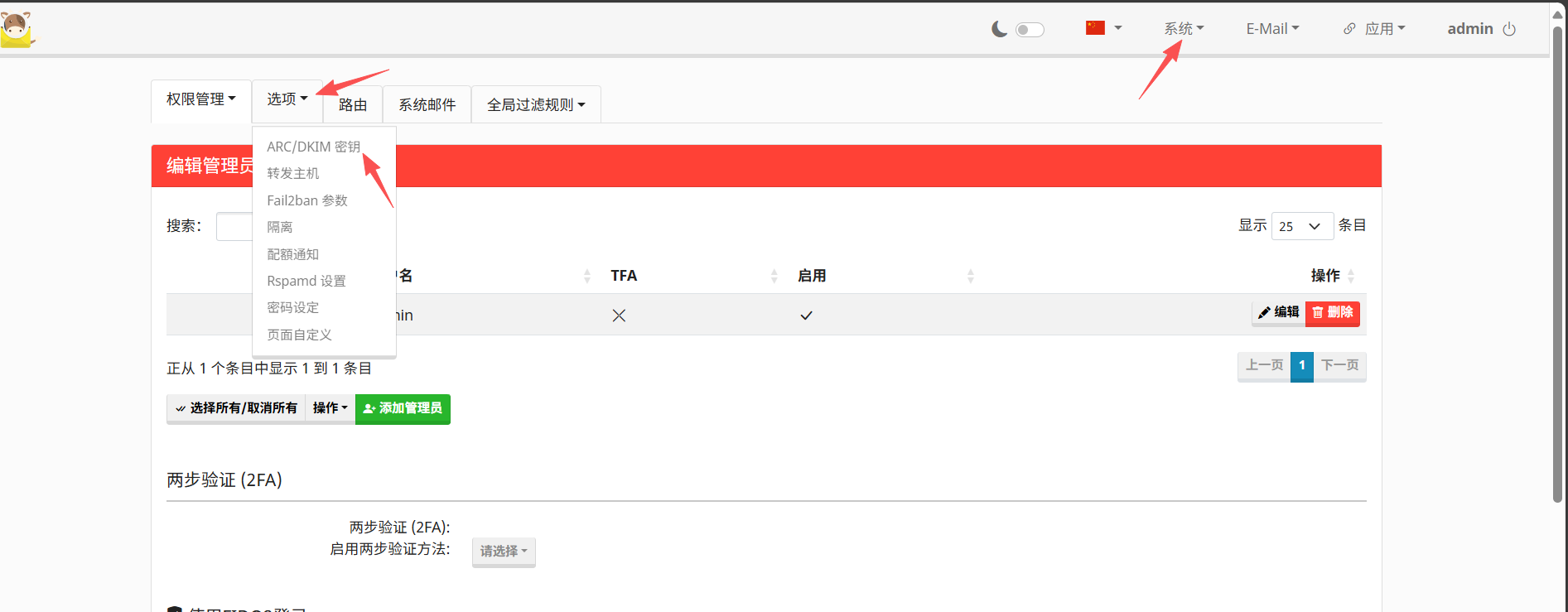 耐心等待几分钟后即可访问 https://mail.example.com/admin 默认用户名 admin 默认密码 moohoo,建议立马修改并开启 2FA 两步验证确保安全。