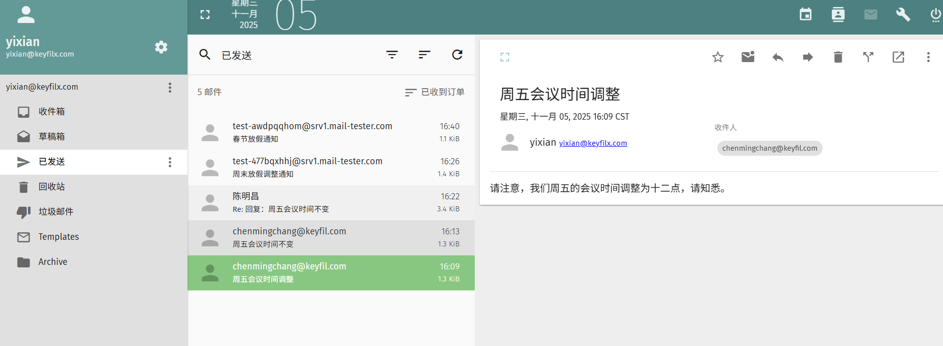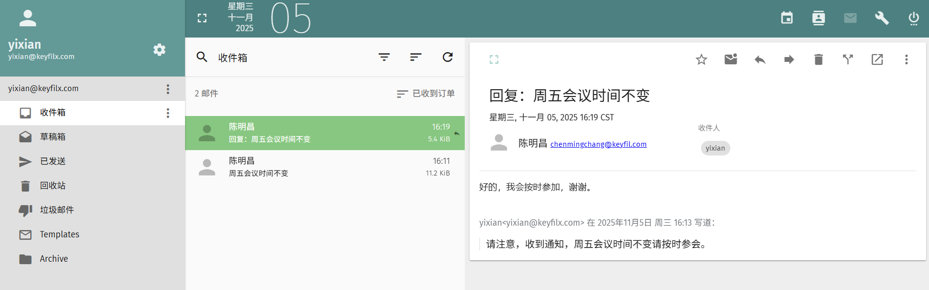 我们使用刚开的用户登录 Mailcow 自带的 SOGo,默认情况下地址为 https://mail.example.com