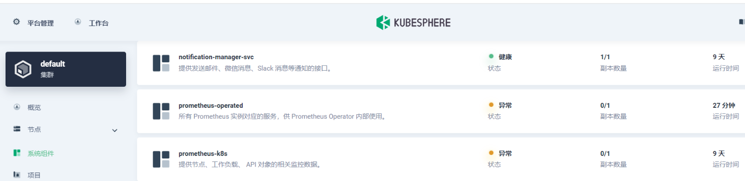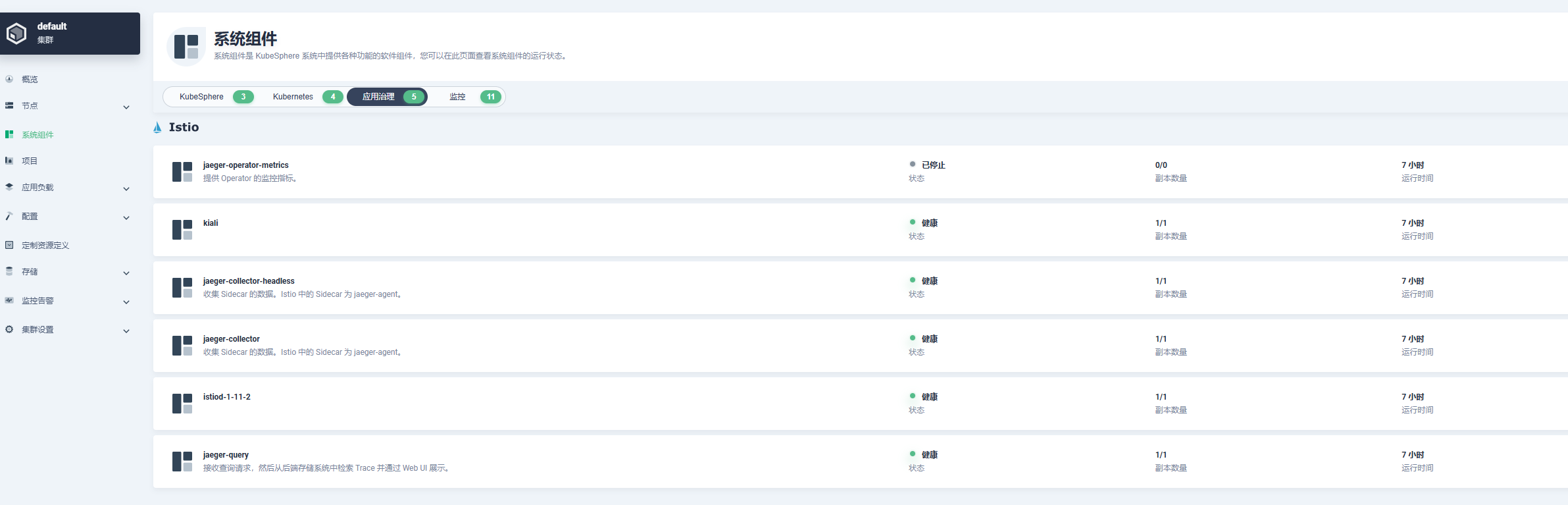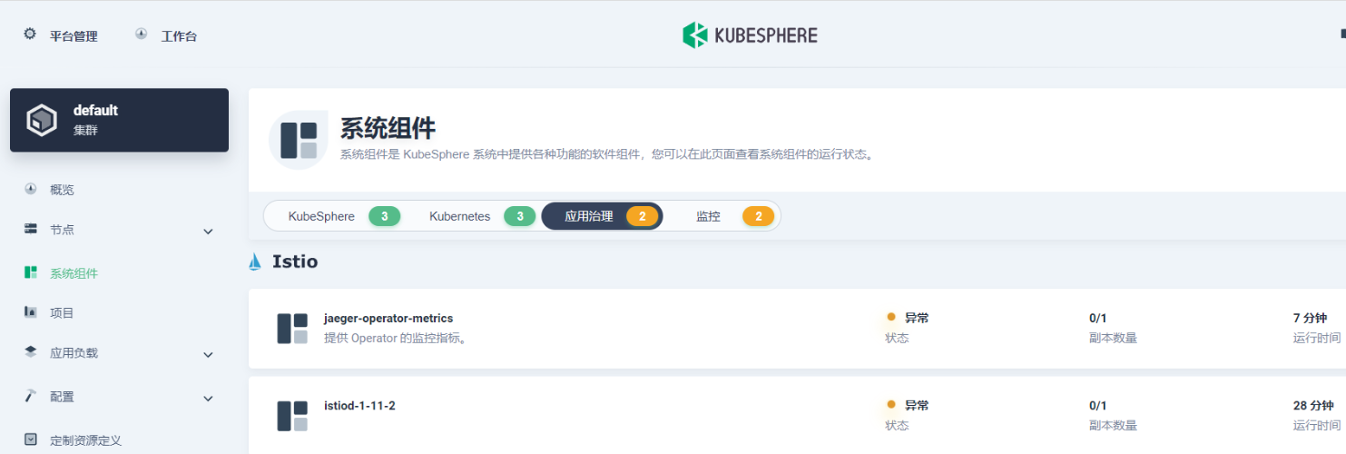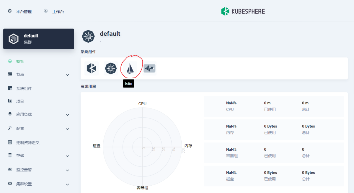 系统组件中已经出现了Istio组件。但是点进去发现:
