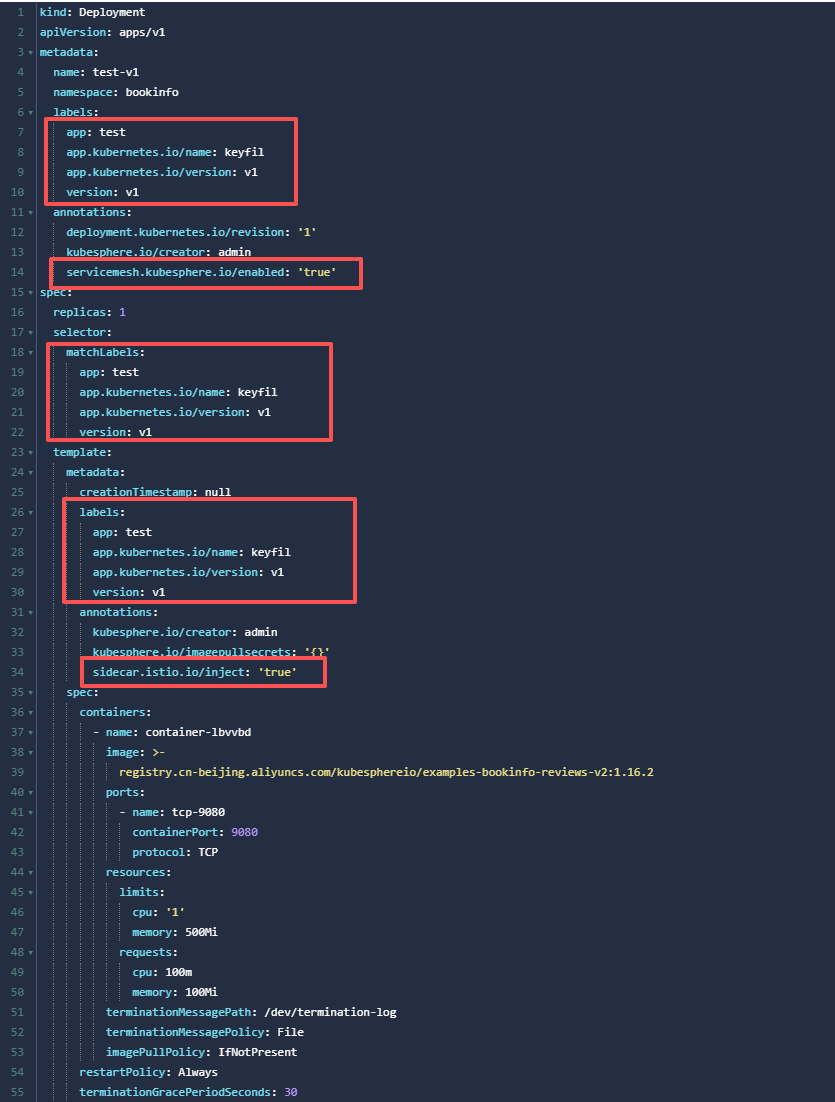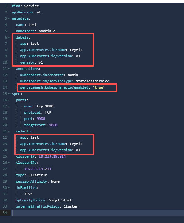 ​ 5.Service/Deployment 有相应 Annotation (KubeSphere CRD Controller 会自动将 Service 同步为 Virtual Service/DestinationRules,CRD controller 需要)
