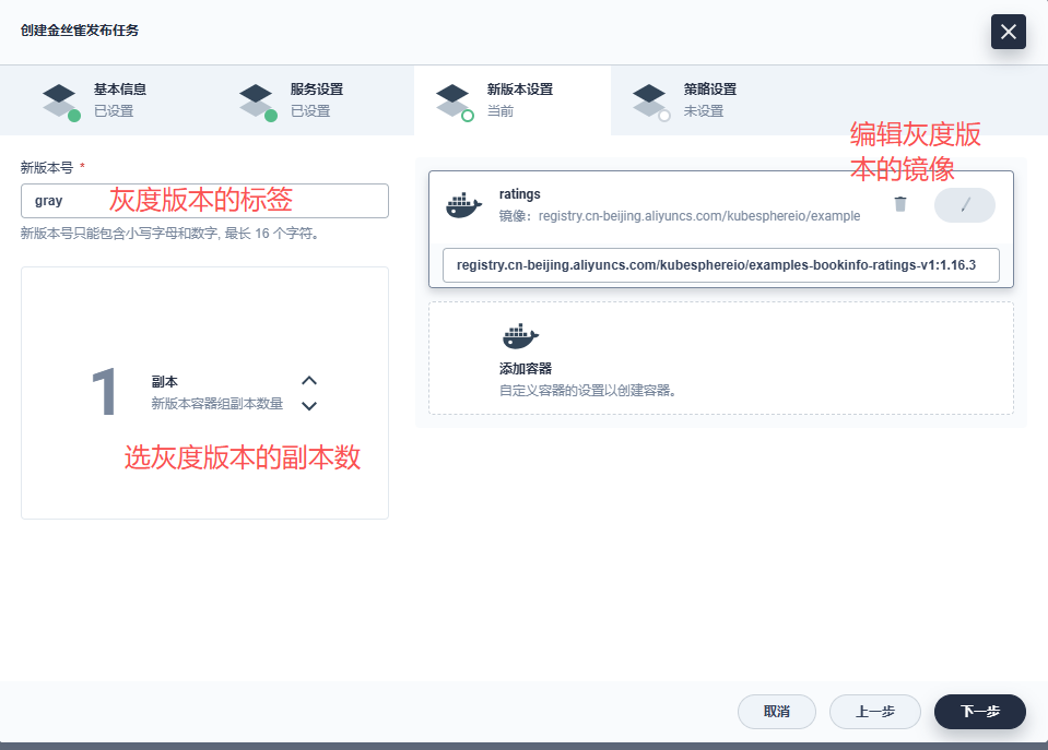 灰度版本有问题的话可以回滚到v1版本,灰度版本验证没问题需要全量发布的话可以选择gray版本接管流量。