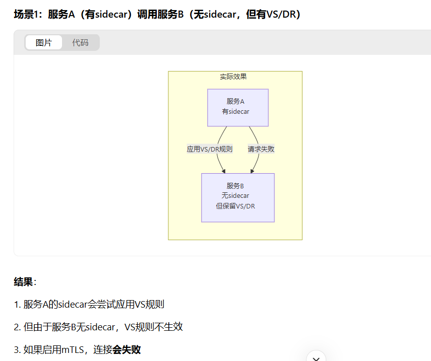 所以如果你的微服务相互间都有调用的话,那还是需要都注入sidecar,规则才能生效。